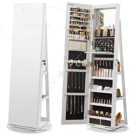 Standing Mirror Jewelry Armoire Cabinet Lockable 360 Swivel Jewelry Cabinet with Led Lights
