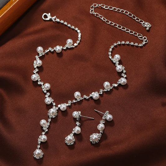 Simple Silver Claw Diamond Set Earrings Necklace Set